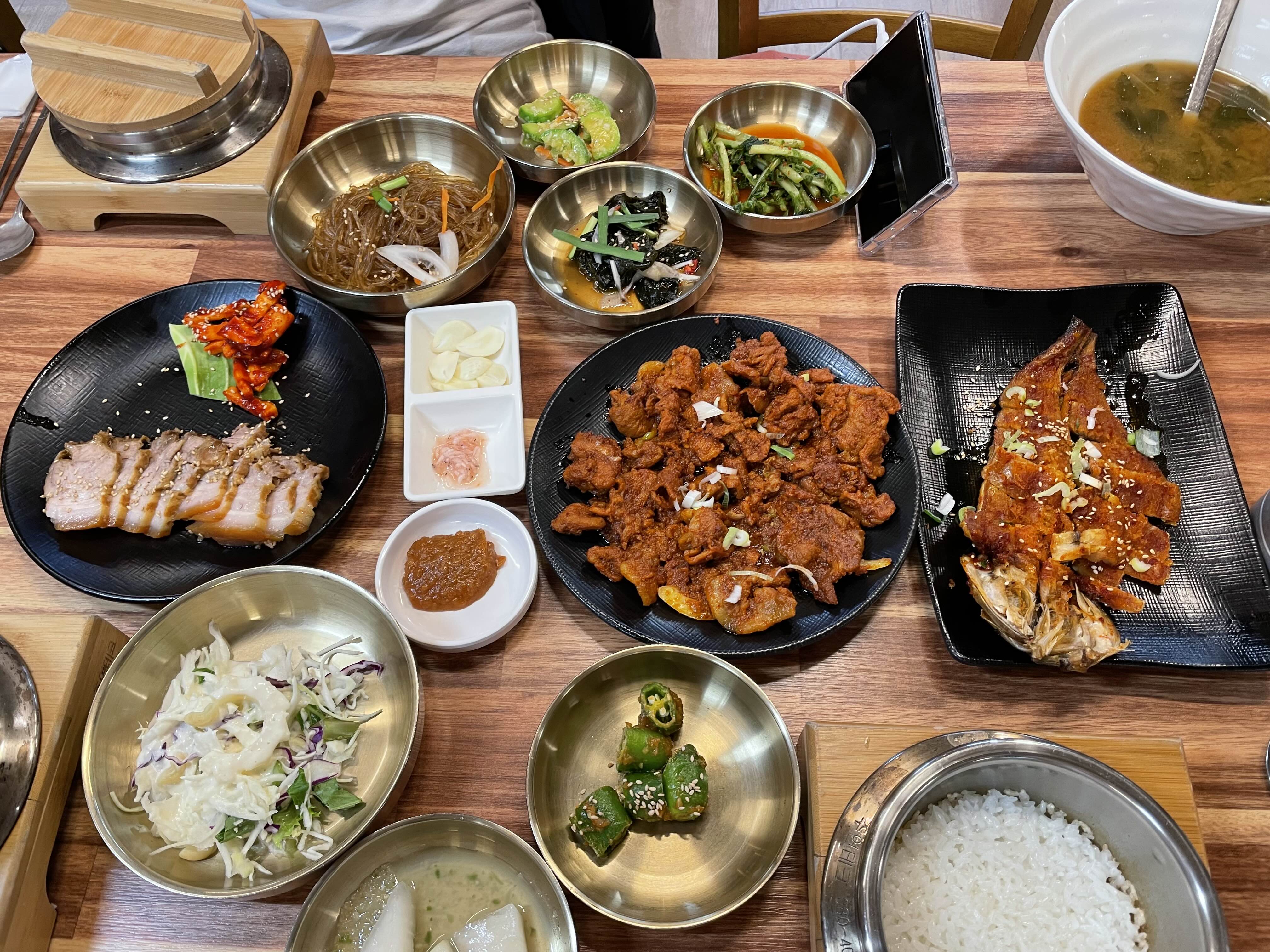 쌈도 많이 주고, 누룽지 밥, 제육, 보쌈 , 생선