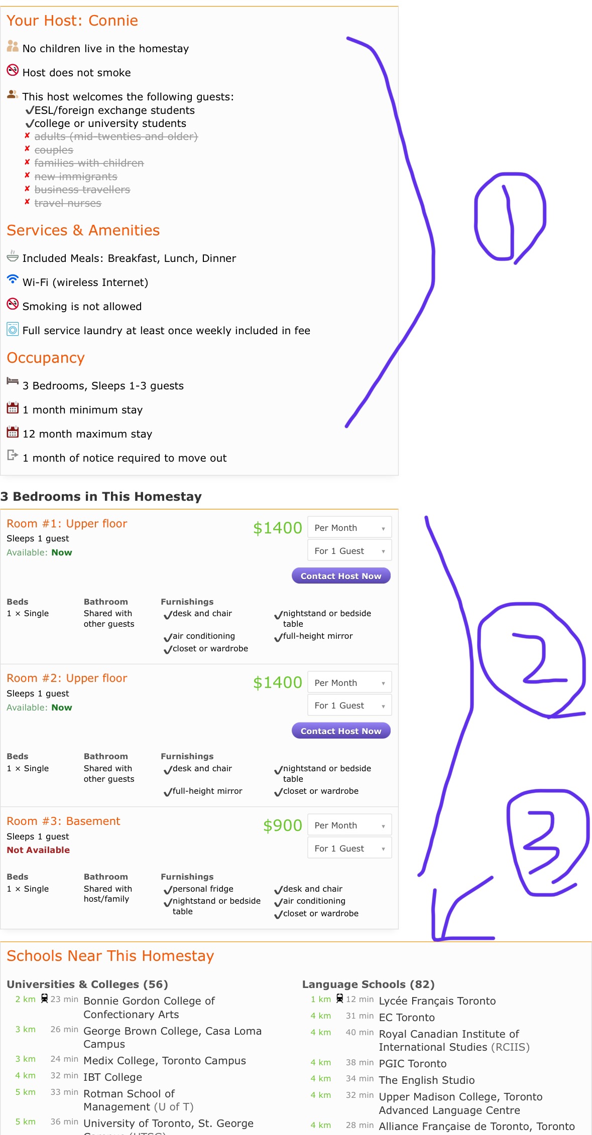 대부분 홈스테이는 다운타운에 있지않다