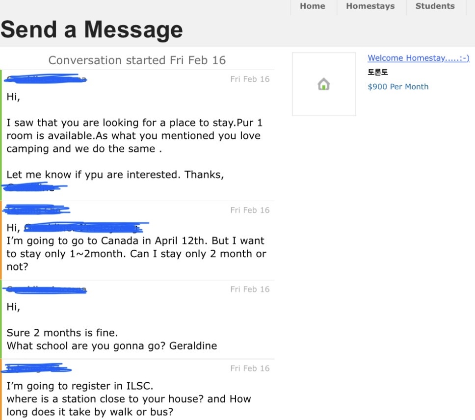 (다행히 호스트맘이 메세지 답변이 굉장히 빨랐지만)