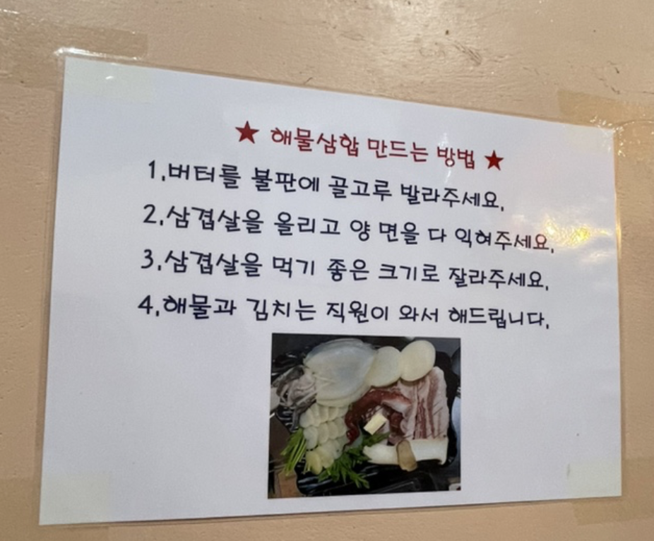 저 사진에 해물삼합 맛있게 먹는 방법이라