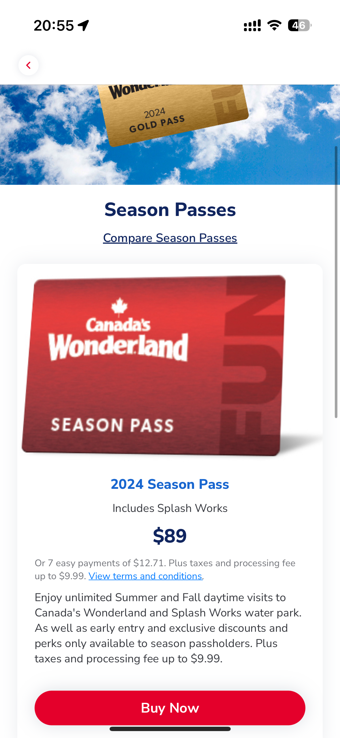 시즌패스 $89 + tax + processing fee