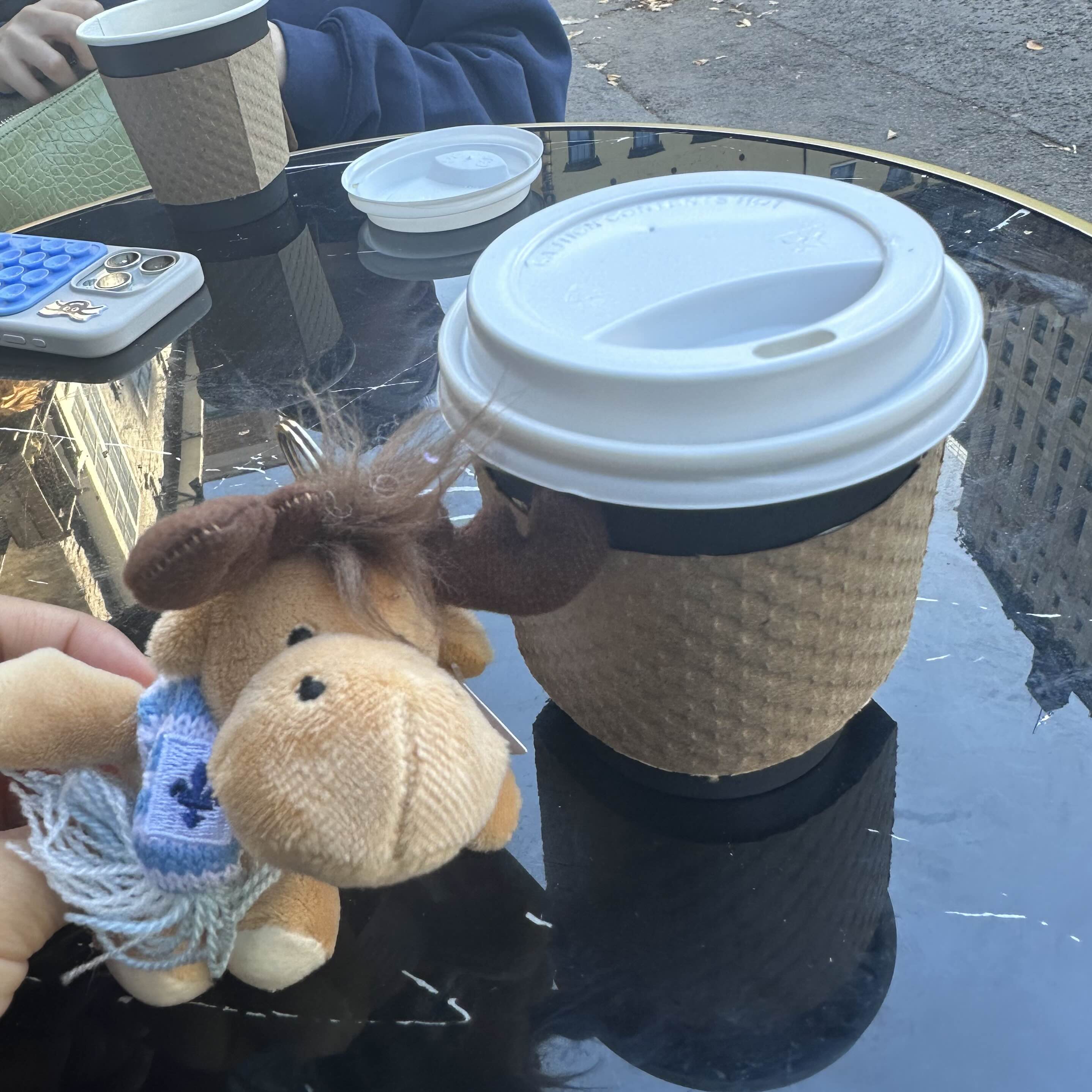 아까 상점에서 산 퀘백키링이랑 커피😊