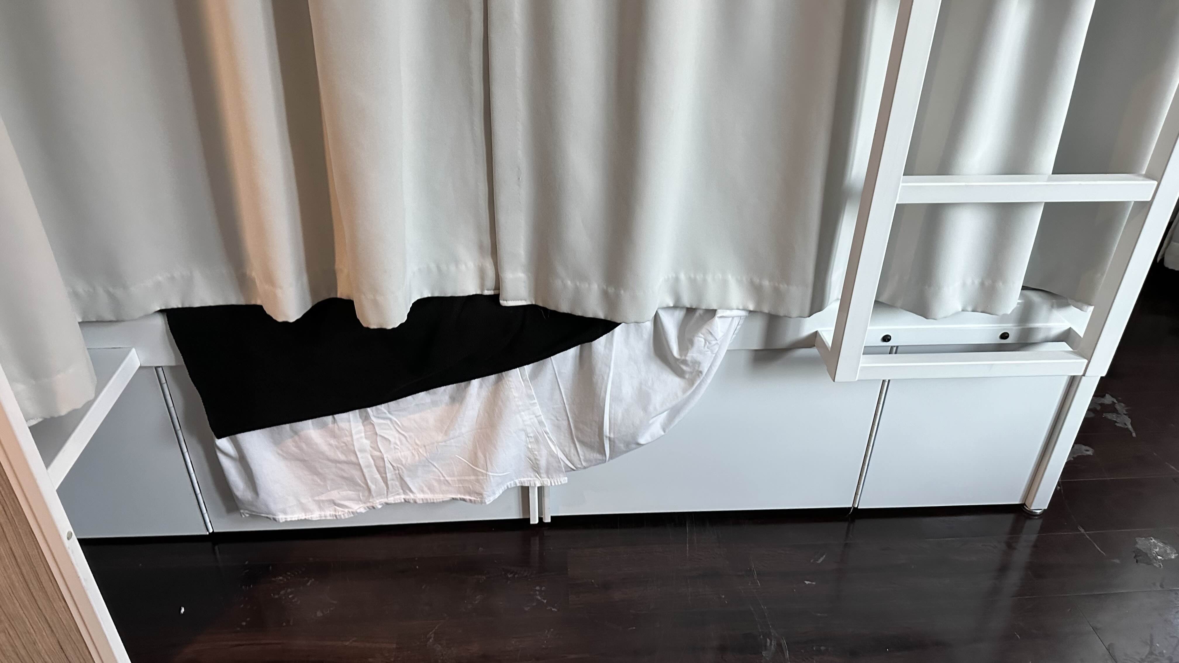 침대 아래에 두칸 서랍이 있는데