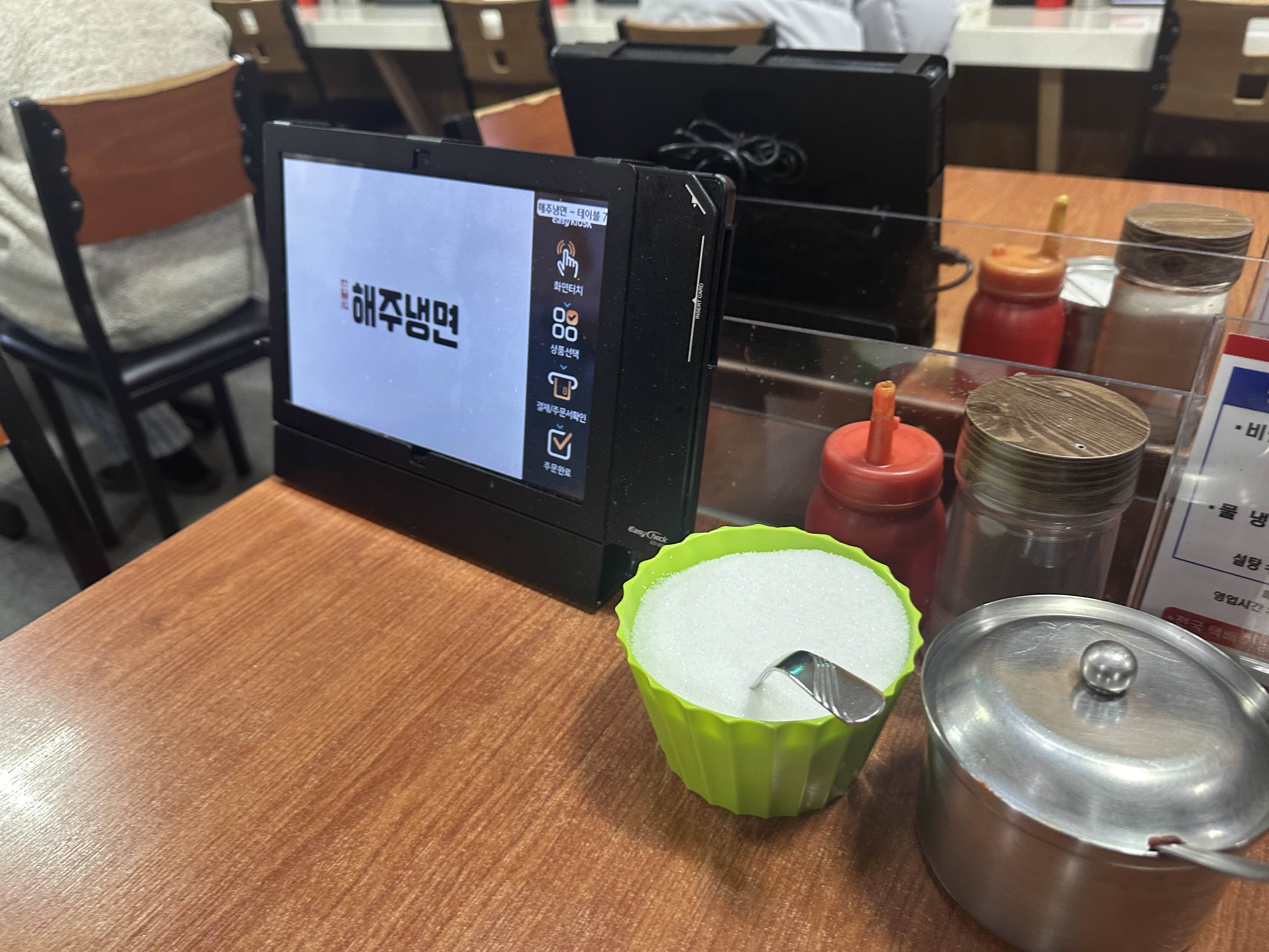 다데기/설탕/식초/겨자가 준비되어있고