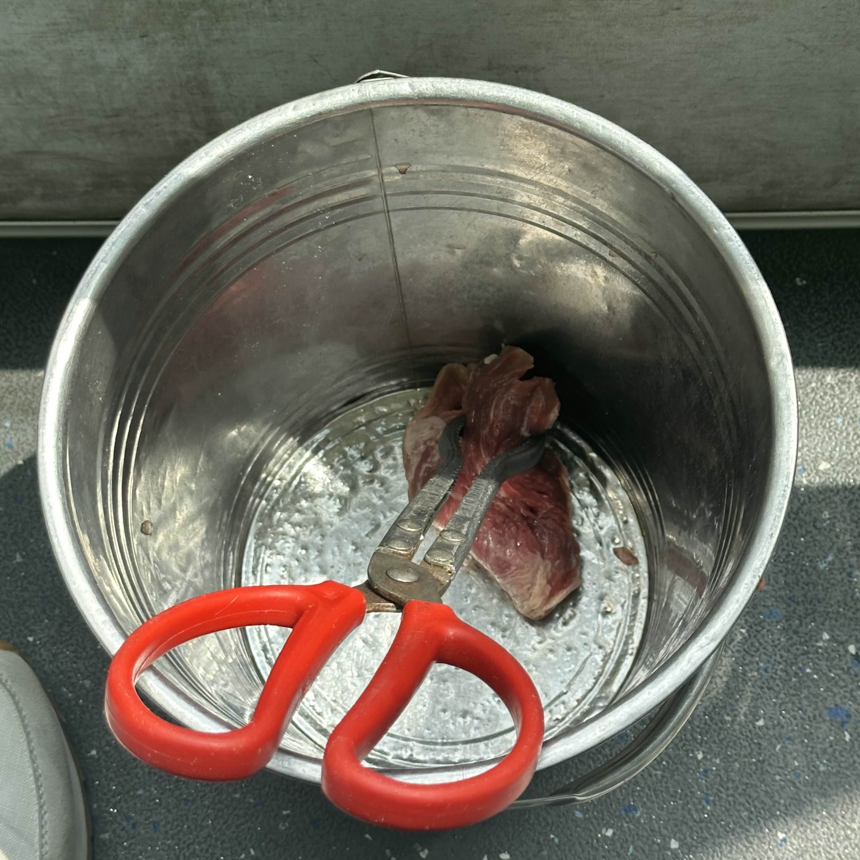 직접 타보면 앞에 이렇게 고기 먹이를 주는