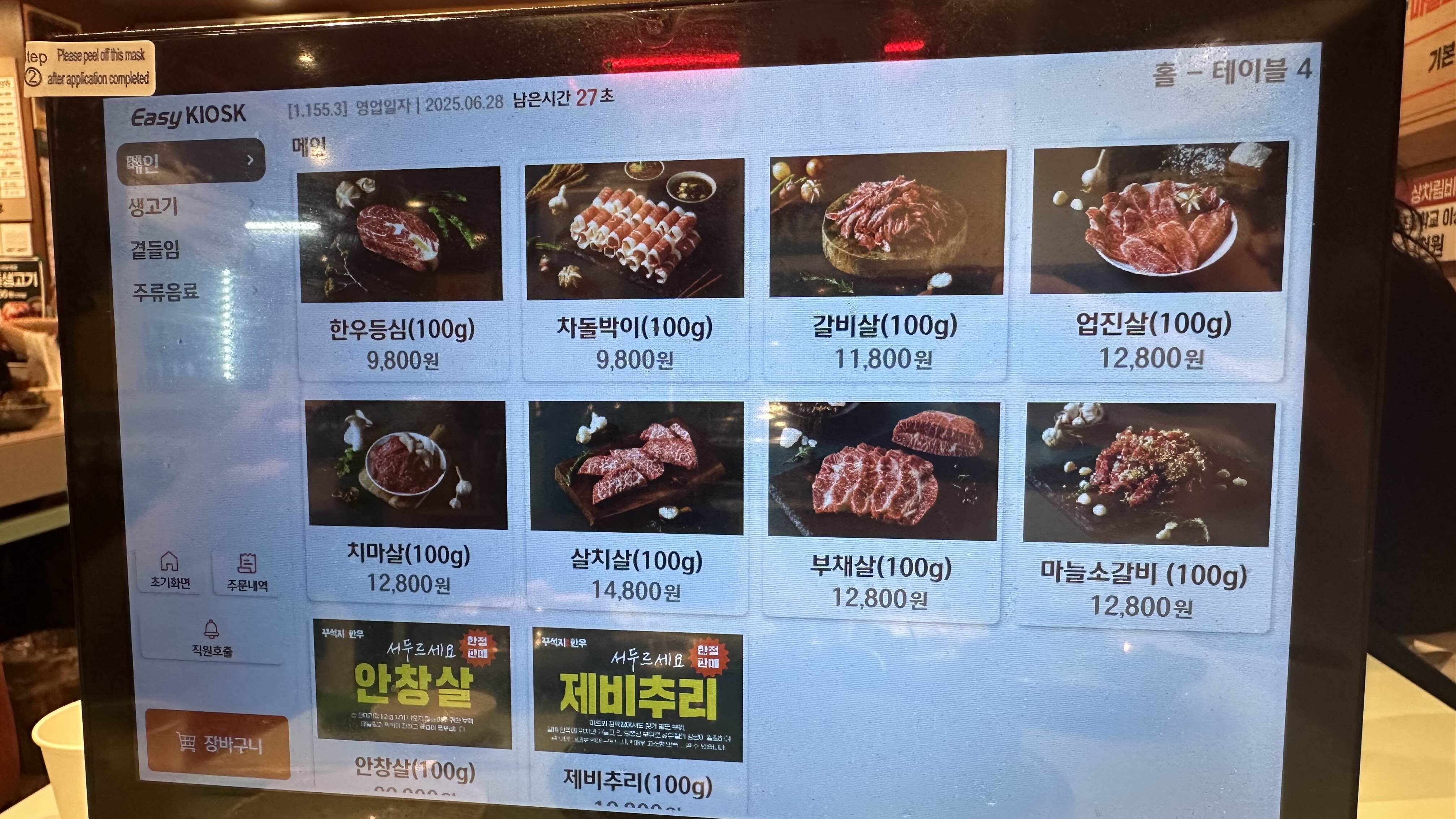 저희는 한우등심 200g에 갈비살100g주문했어요