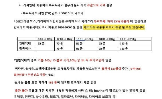 -> 택배 픽업시 무게책정, 대략 가격안내받음