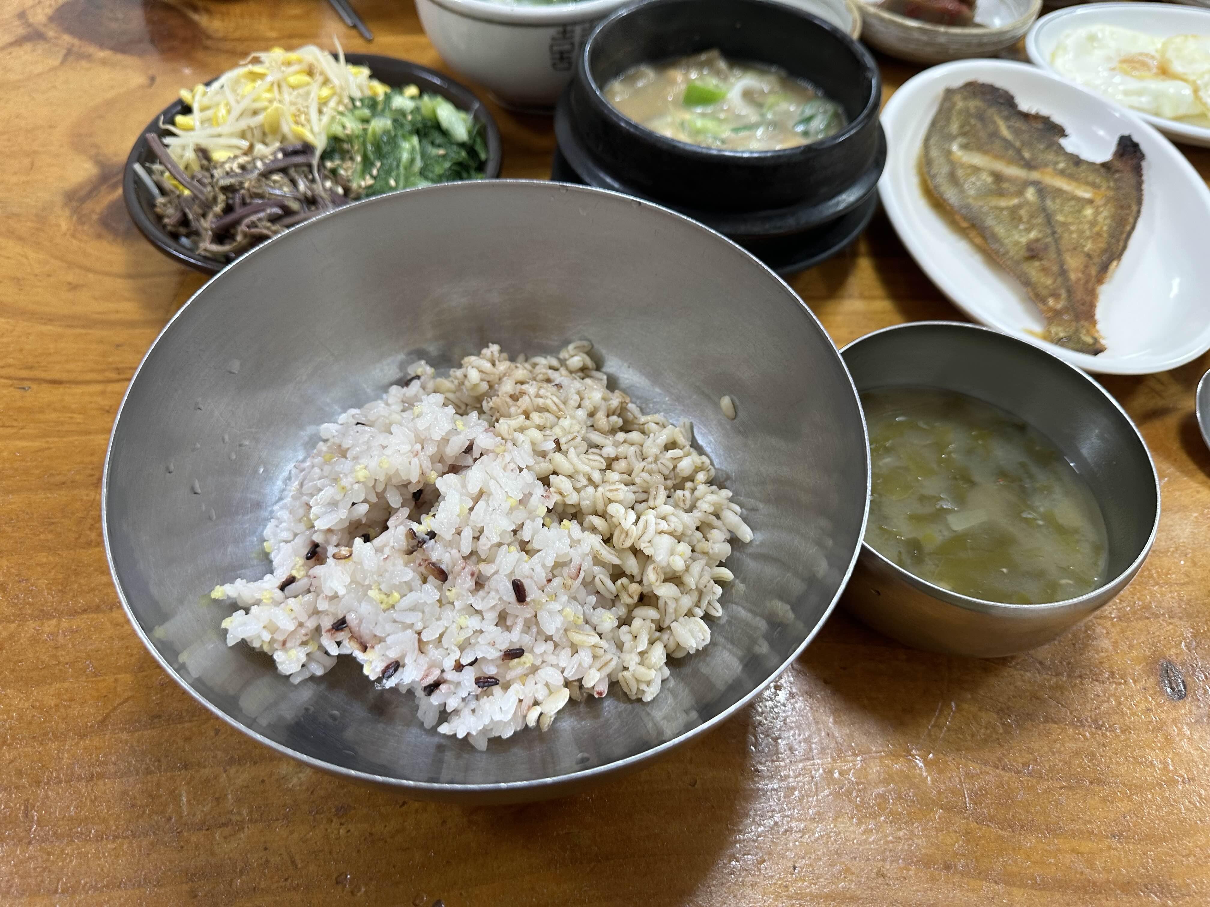 보리밥이랑 잡곡밥이 섞여나오는 것 같아요.